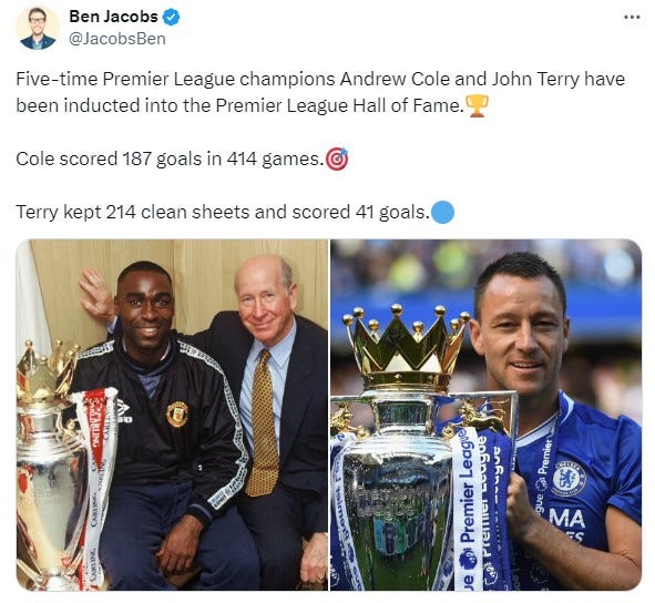 The five-time Premier League champions have been named into the Hall of Fame, as reported by Ben Jacobs on his X account.