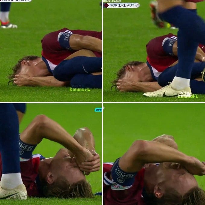 Norway doctor Ola Sand: “He got a small ankle sprain. We will see, maybe we use ultrasound to look at it. If we are unsure, there will be an MRI tomorrow.”
