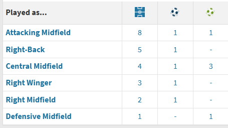 He currently leads the club with 10 direct goal involvements (5 goals, 5 assists) across all competitions.