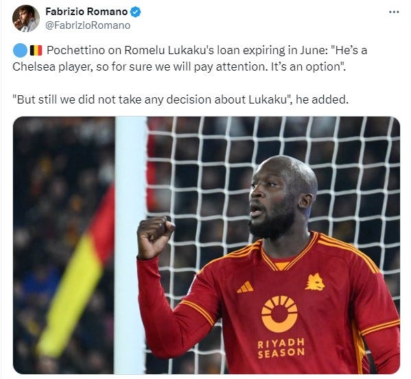 Fabrizio Romano has reported on his X account what the Chelsea manager had to say about Lukaku.
