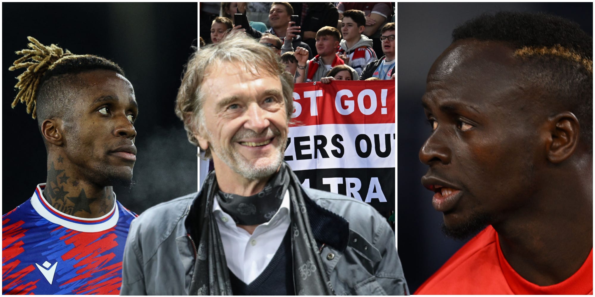 [From left to right: Wilfried Zaha, Sir Jim Ratcliffe and Sadio Mane]