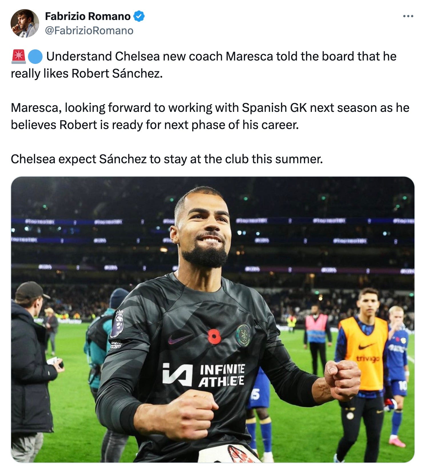 Romano tweeted on Monday: “Understand Chelsea new coach Maresca told the board that he really likes Robert Sanchez.